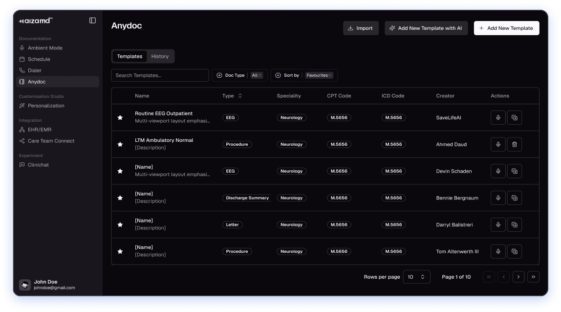 Eliminate the burden of manual coding. Accurate ICD-10 and Procedural codes are automatically generated alongside each medical note, ensuring documentation is ready for billing.