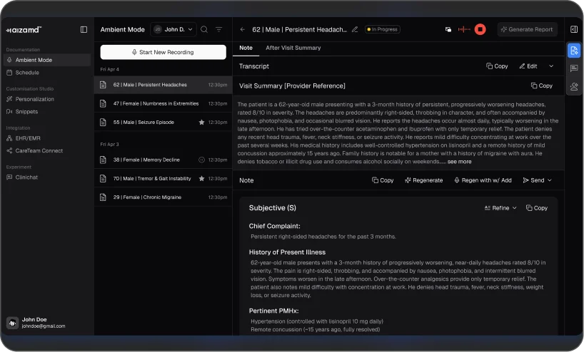 Clinicians can maintain eye contact and focus on patient care while the AI accurately drafts the note behind the scenes.